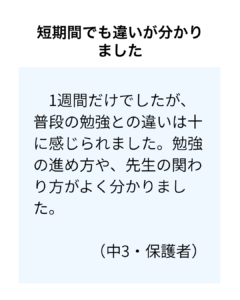 授業体験では1週間、普段通りの七ゼミの授業を受けていただけます。また在校生と同じサービスも受けていただけます。