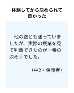 - ページ下段のメールフォーム、LINEまたはお電話で授業体験をお申し込みください。